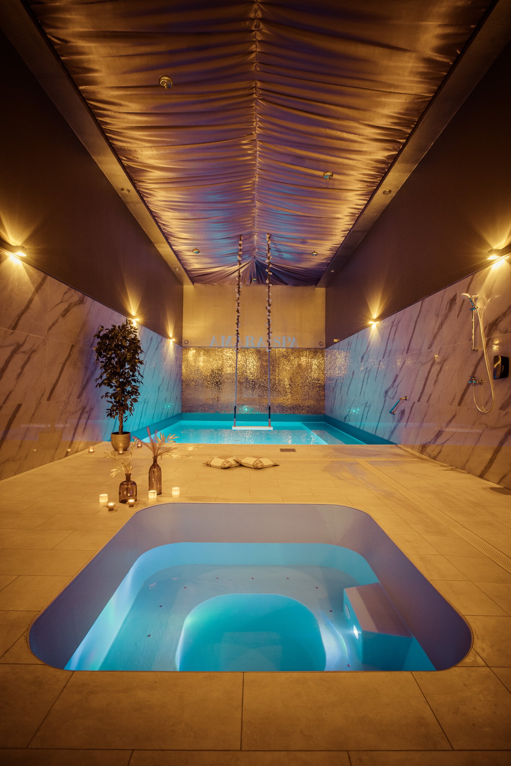 In ons luxe privé spa-complex geniet je van een verwarmd zwembad direct in de kamer en alle moderne faciliteiten. Je hebt het hele complex van 200m², verdeeld over twee verdiepingen, volledig voor jezelf.