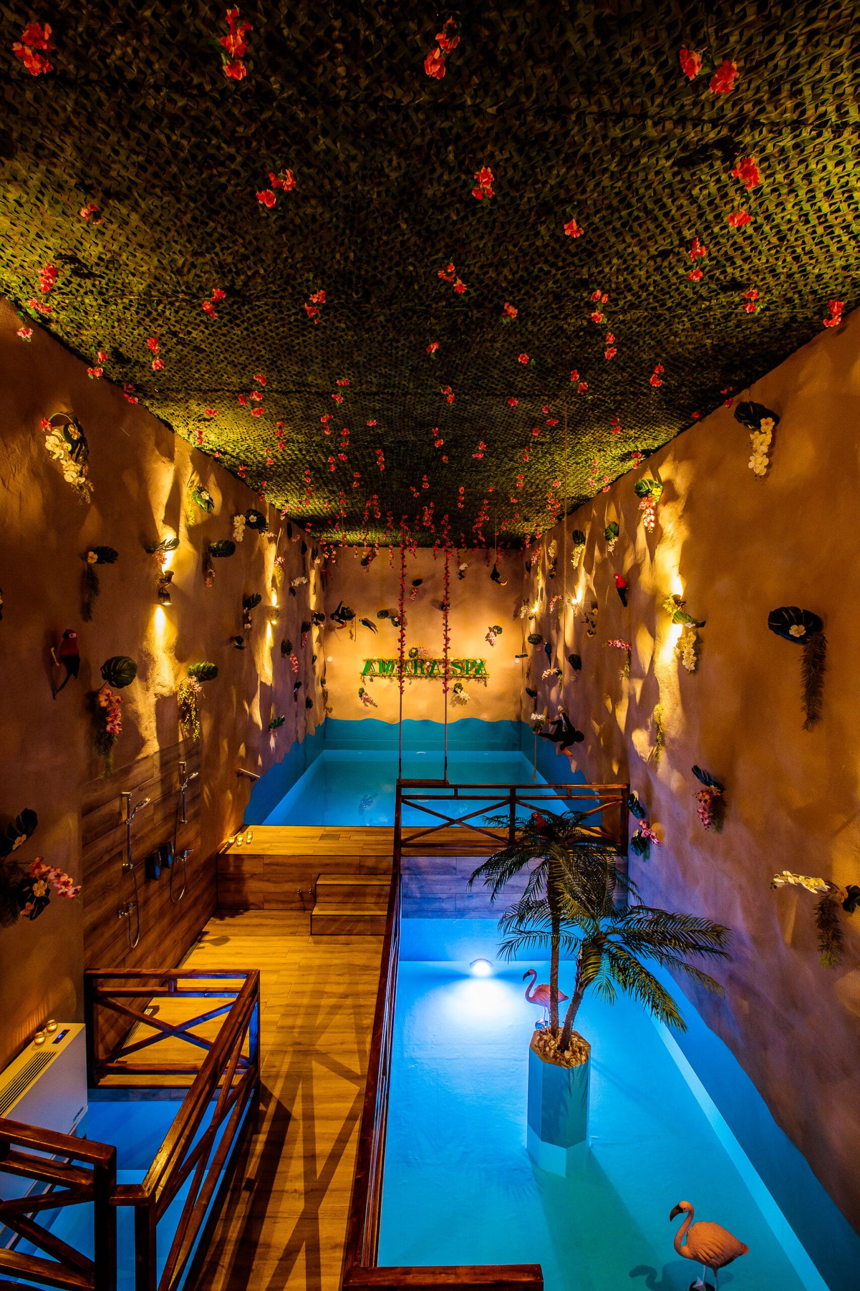 Ons complex biedt drie themaruimtes, elk met dezelfde luxe faciliteiten zoals een zwembad, bubbelbad, stoomcabine, loungebed, en een sauna. Elke ruimte heeft een schommel in het zwembad voor extra ontspanning.